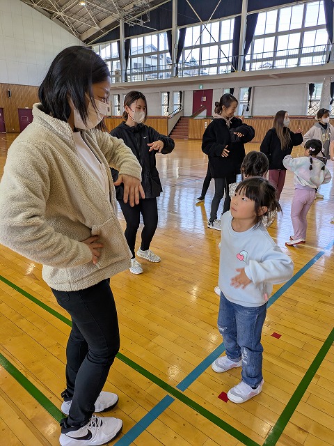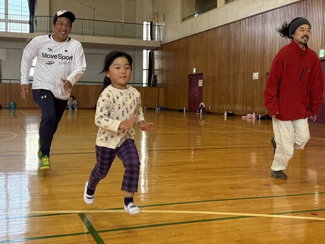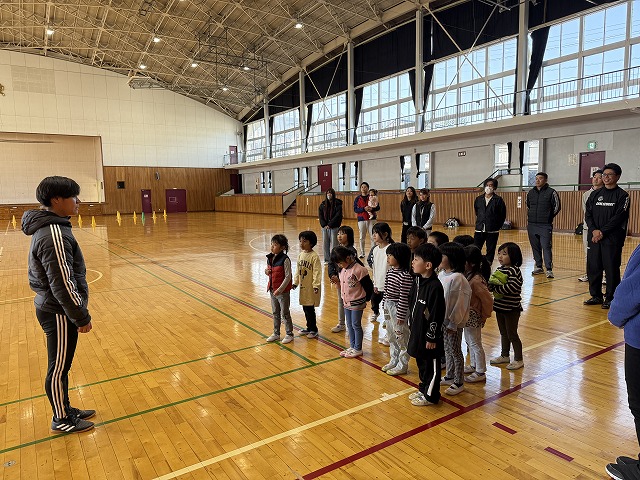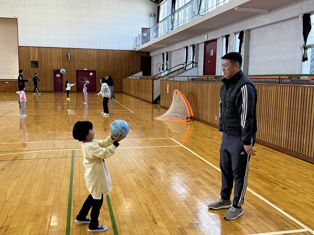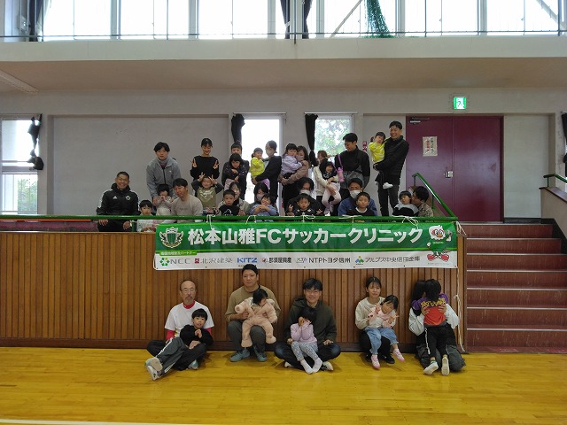 松本山雅のサッカーコーチを講師にお迎えし、親子運動教室を鼎体育館にて行いました。