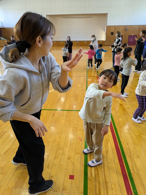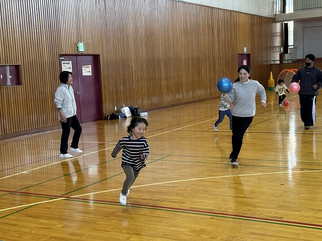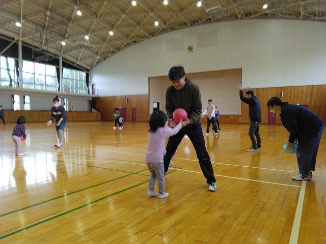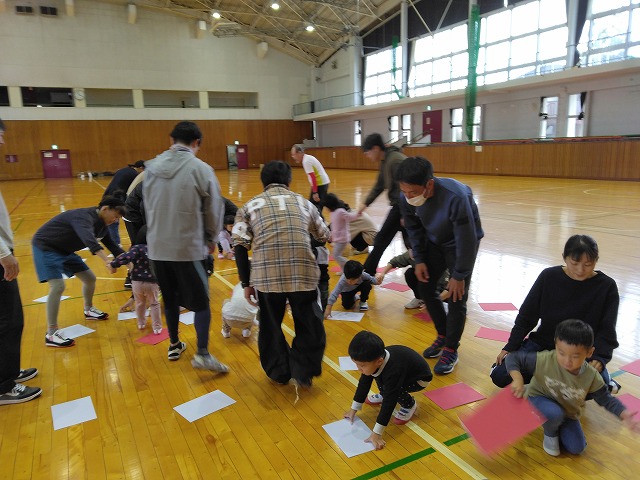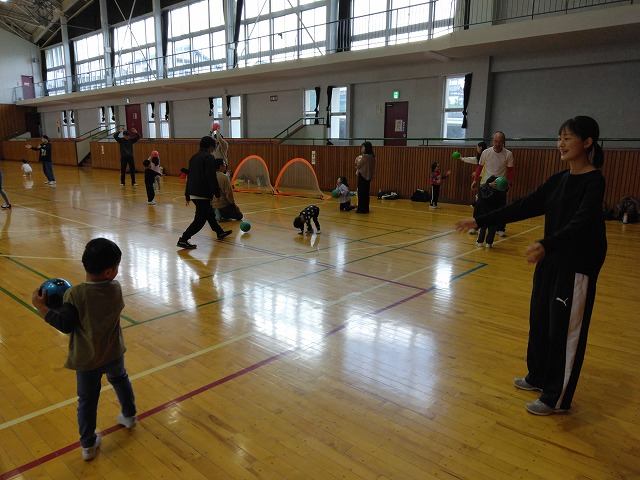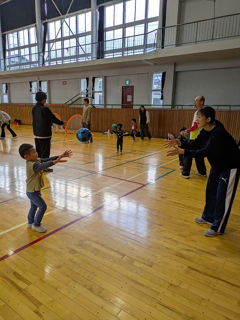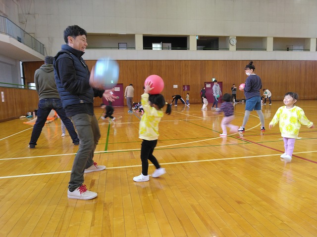 ボールを使った遊びや全力で駆け回るゲームなどたくさんの内容で親子でしっかり身体を動かし触れ合って工夫し合って楽しんでいただけました。