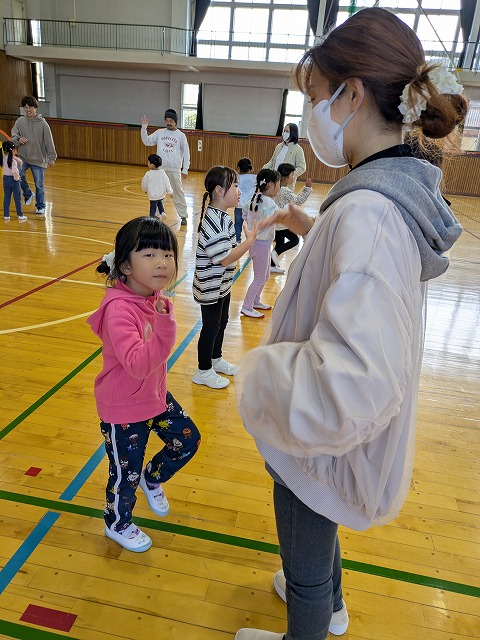 終了後は運動会で途中で雨のためできなかった親子のフォークダンス「とんでったバナナ」と親子競技「めくってかえしてよーいドン!」をリベンジしました。「ぼくのお母さんはこれを楽しみにしてたんだよ」などという嬉しい言葉も聞かれ、とても盛り上がりました。保護者の皆様、本当にありがとうございました。ダンスは練習の成果あって完璧でした!