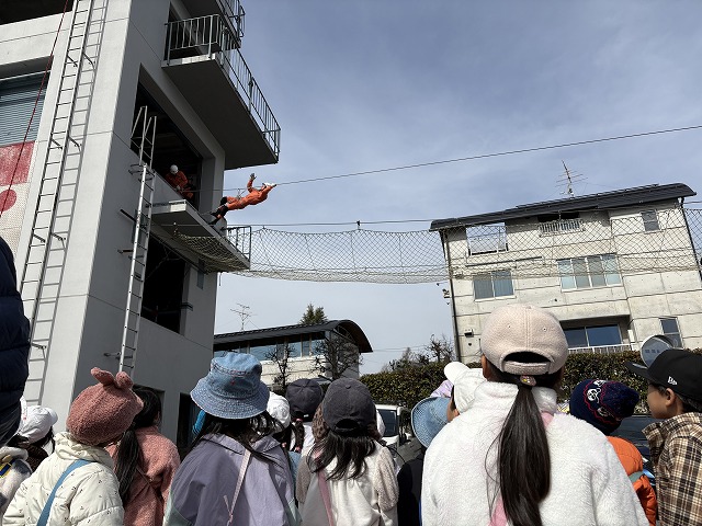 ちょうど本当の出動要請がかかり、消防士さんたちはあっという間に準備を整え真剣なまなざしで出動されました。子ども達も表情を引き締め見送りました。