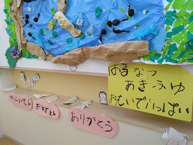 今年度飾った壁面製作を全部飾って1年間をふりかえりました。